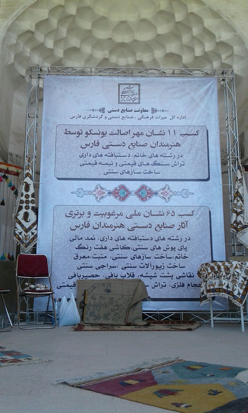 به گزارش پایگاه خبری،تحلیلی جمعیت جوانان قشقایی،نمایشگاه صنایع دستی استان فارس که با حضور شهرستان های مختلف استان در شیراز،ارگ کریم خان زند دایر گردیده است.